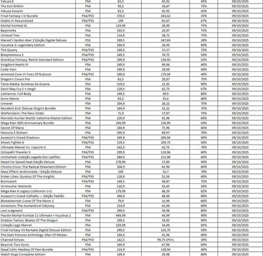 E mais abaixo, você encontra uma lista completa com MAIS DE 150 jogos, todos separados por console, preço promocional e desconto. É só escolher seus favoritos e aproveitar!